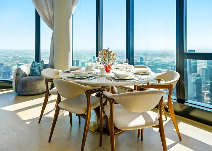 Panoramic City & Bay Views And Free Parking Melbourne appartementen bevinden zich in de Melbourne CBD wijk van Melbourne, op 12 minuten loopafstand van het Melbourne Aquarium, en omvatten een binnenzwembad met een sauna. Dit appartement ligt tevens op een klein stukje lopen van het Forum-theater.